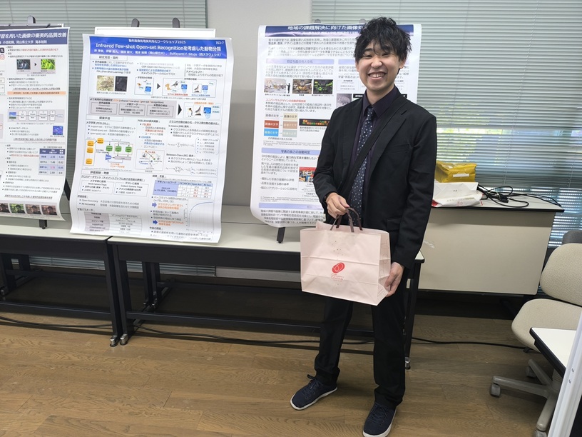 2025年9月18-19日,福岡工業大学で開催された2025電気・情報関係学会九州支部連合大会 にてM1 小林さんが"UAV映像に対するカメラの動きを考慮した複数物体追跡",M1 田中さんが"大規模マルチモーダルモデルの生成キャプションに基づく審美性品質推定の高精度化",M1 中釜さんが"色彩美学評価に基づく深層学習を用いた画像の審美的品質改善"という題目でそれぞれ発表を行いました。