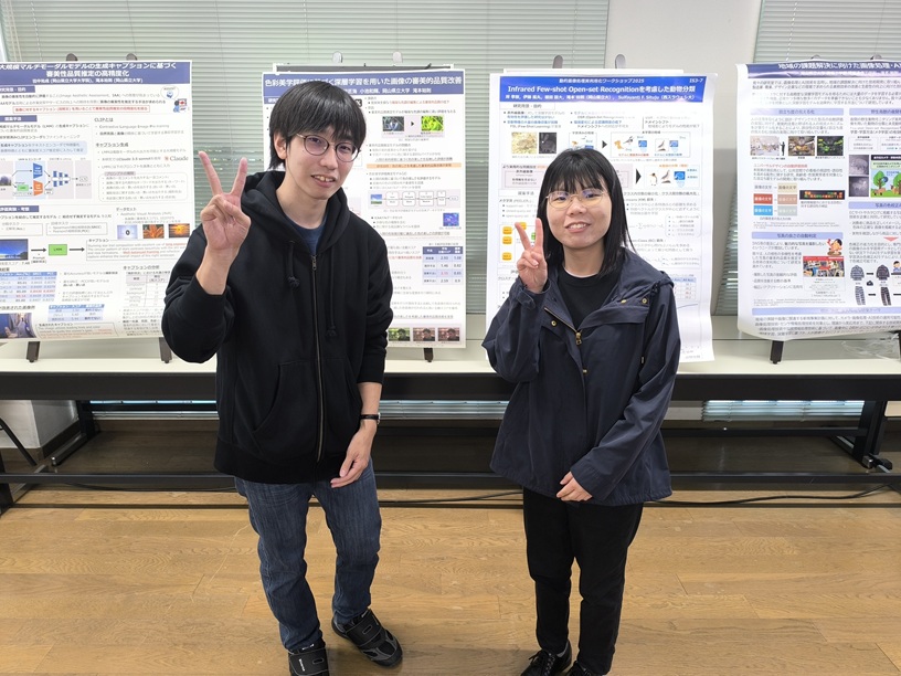 2024年11月16-17日,広島市立大学で開催された第26回 IEEE広島支部学生シンポジウムにてM2 岸さんが"赤外線カメラトラップにおける動物分類のための少数データ学習",M1 小池さんが"深層学習を用いたインタラクティブな画像に対する審美的品質改善の高度化"という題目で発表を行いました。 また、岸さんの発表がHISS 優秀研究賞を受賞しました。