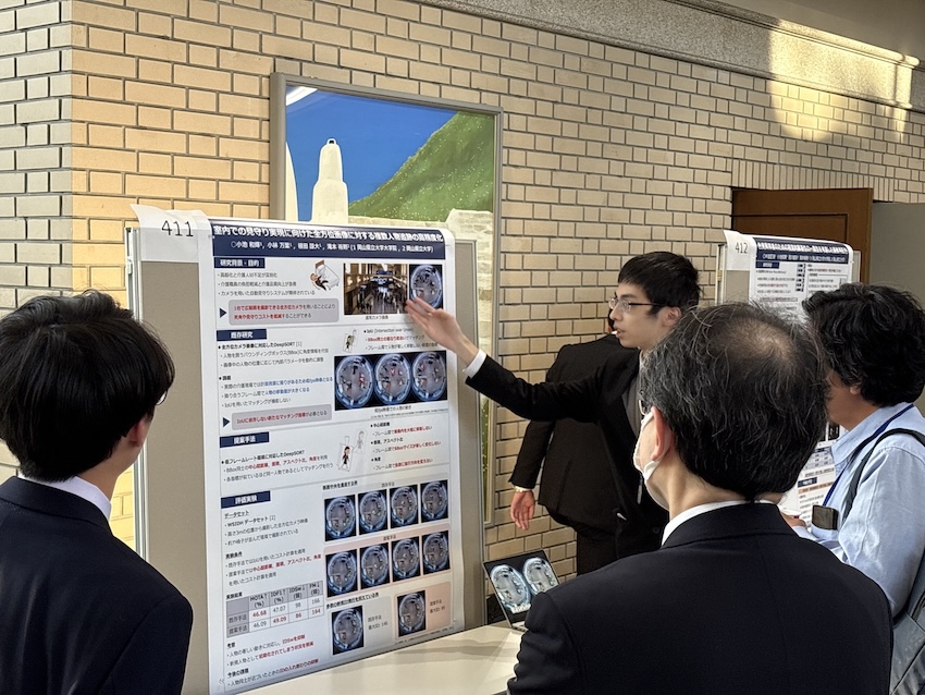 2025年9月18-19日,福岡工業大学で開催された2025電気・情報関係学会九州支部連合大会 にてM1 小林さんが"UAV映像に対するカメラの動きを考慮した複数物体追跡",M1 田中さんが"大規模マルチモーダルモデルの生成キャプションに基づく審美性品質推定の高精度化",M1 中釜さんが"色彩美学評価に基づく深層学習を用いた画像の審美的品質改善"という題目でそれぞれ発表を行いました。