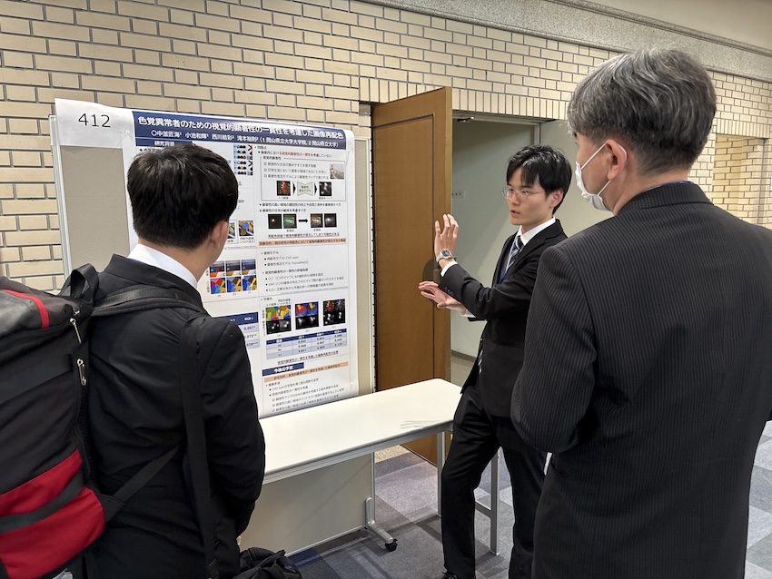 2025年11月29日,関西大学で開催された 日本福祉工学会 第29回学術講演会 にてM2 小池さんが"室内での見守り実現に向けた全方位画像に対する複数人物追跡の高精度化",M1 中釜さんが"色覚異常者のための視覚的顕著性の一貫性を考慮した画像再配色"という題目でそれぞれ発表を行いました。